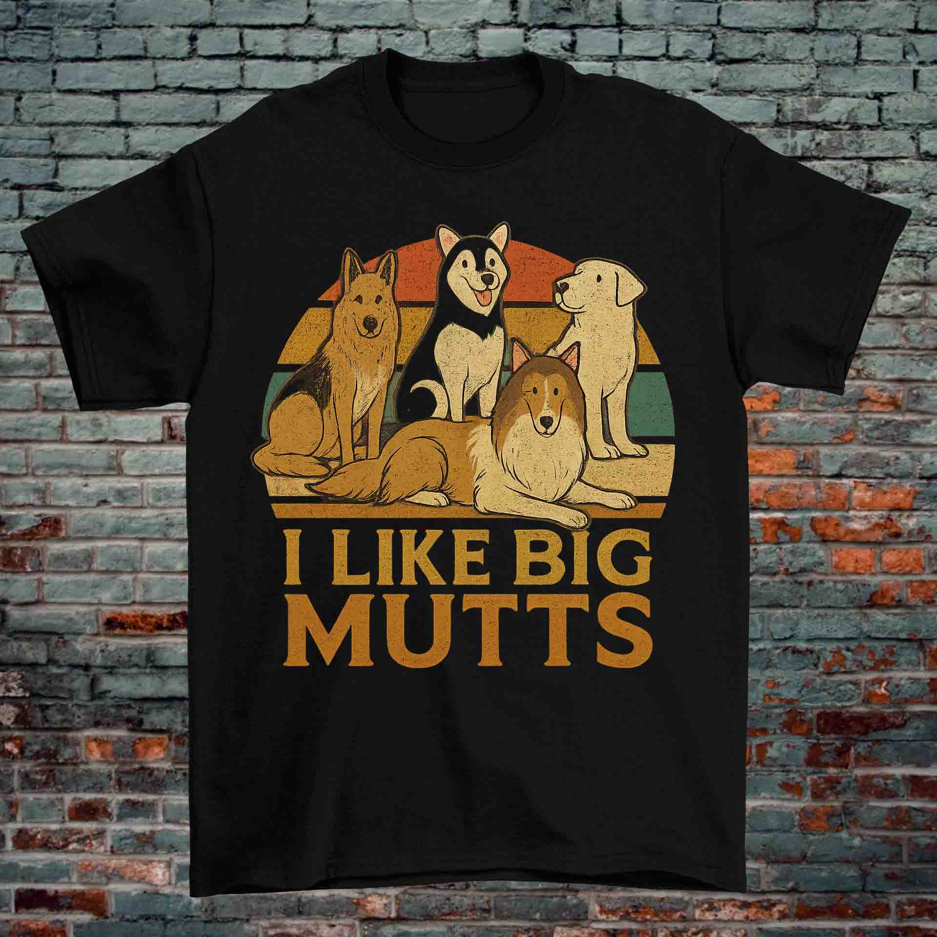 For dog lovers with a sense of humor, this vintage-inspired “I Like Big Mutts” t-shirt is a guaranteed crowd-pleaser. Featuring a lineup of happy, loyal mixed-breed dogs and retro sunset styling, this tee is a fun nod to canine companions of all shapes and sizes.