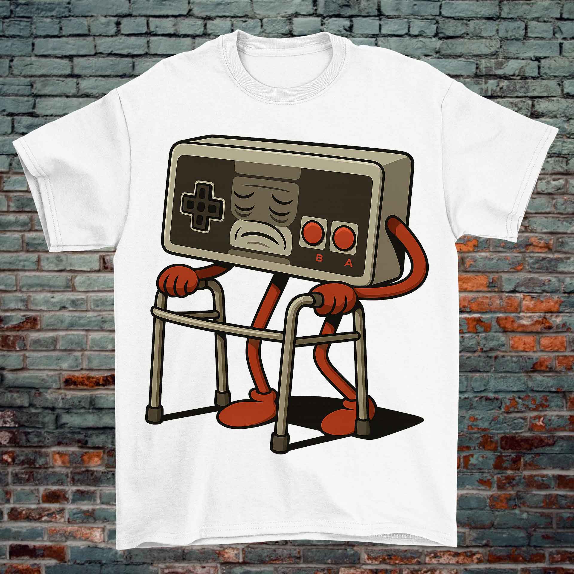 A hilarious throwback for true retro gamers—this “Old School Controller” tee features a vintage gamepad aged into retirement, complete with a walker and a tired expression. It’s a fun, nostalgic tribute to the 8-bit era, perfect for anyone who remembers blowing on cartridges and button-mashing through the golden days of gaming.